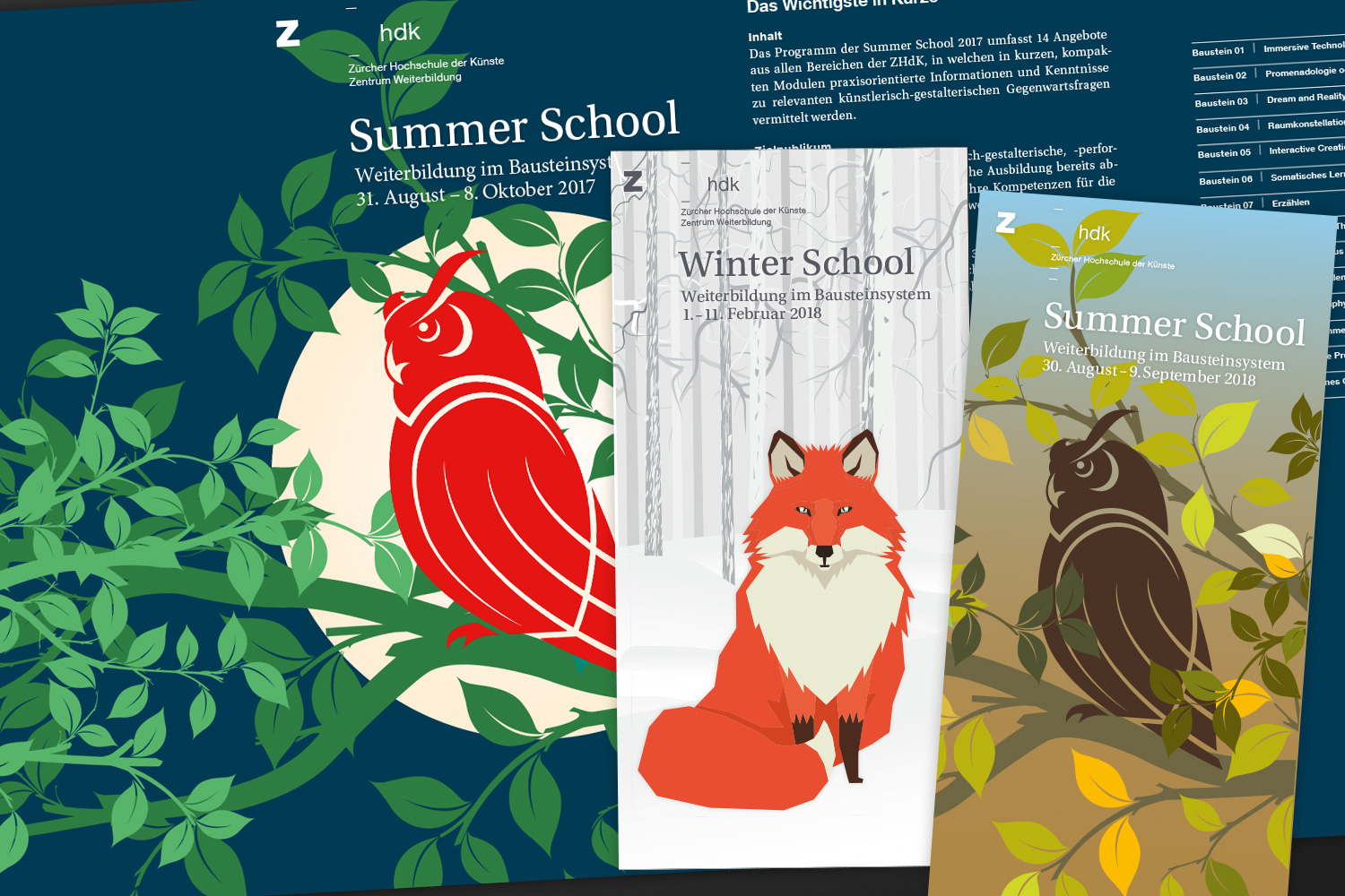 Zum Weiterbildungsangebot der Zürcher Hochschule der Künste erscheint halbjährlich eine Broschüre. Eine Illustration als Key-Visual erscheint auf Broschüre, Plakaten, Webbanern und animierter Kino-Werbung.