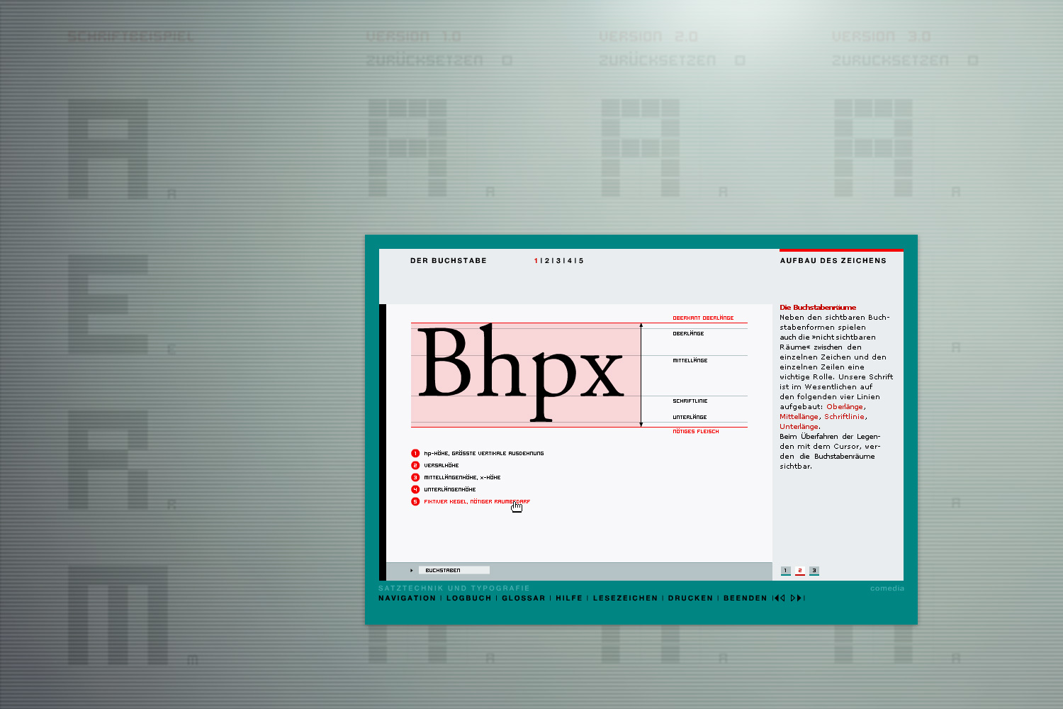 schaft (ehemals comedia) und des ZFA erstellt. Auf zahlreichen Seiten werden typografische Grundlagen in stark interaktiver Form didak-